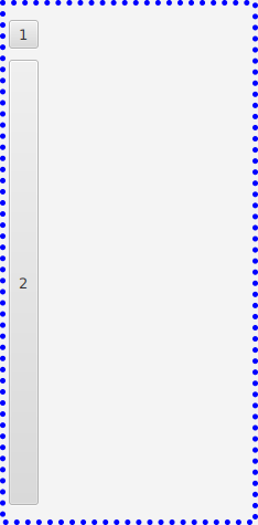 <VBox xmlns:fx="http://javafx.com/fxml"> <Button text="1"/> <Button text="2" maxHeight="Infinity" VBox.vgrow="ALWAYS"/> </VBox>