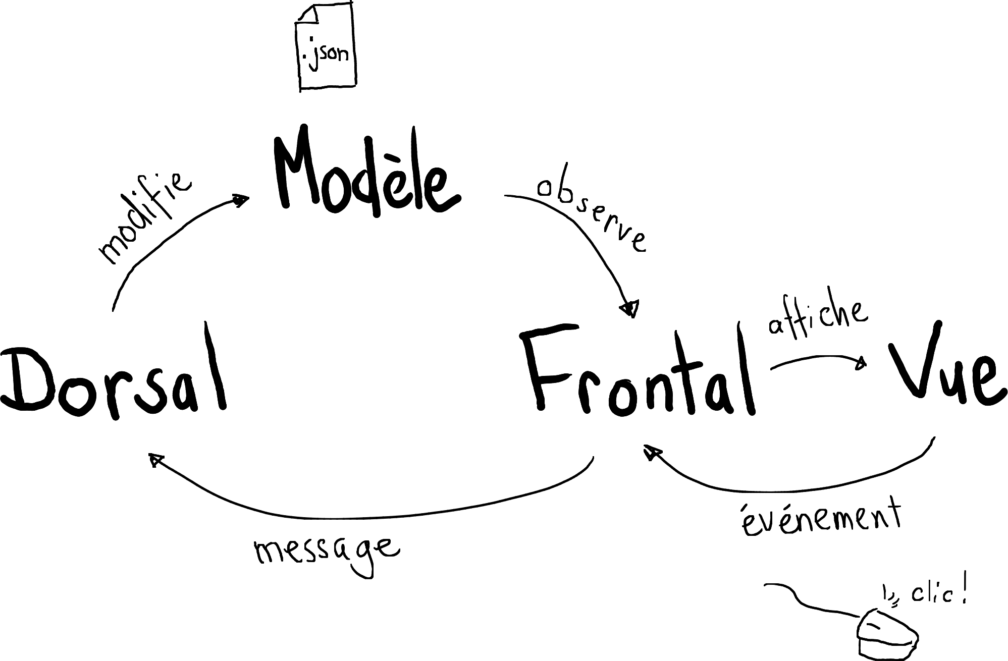 - communication par messages entre le frontal et le dorsal
